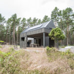Energy efficiency is ensured by an airtight and insulating external cladding. CLT wall panels consist of cross-laminated timber, wood fibre wool, wind-proof fabric, and external cladding.
