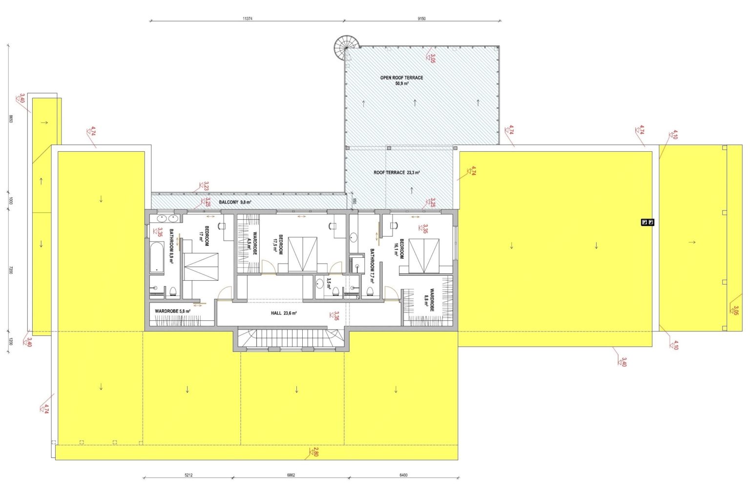 356 m2Terraces and/or balconies